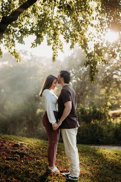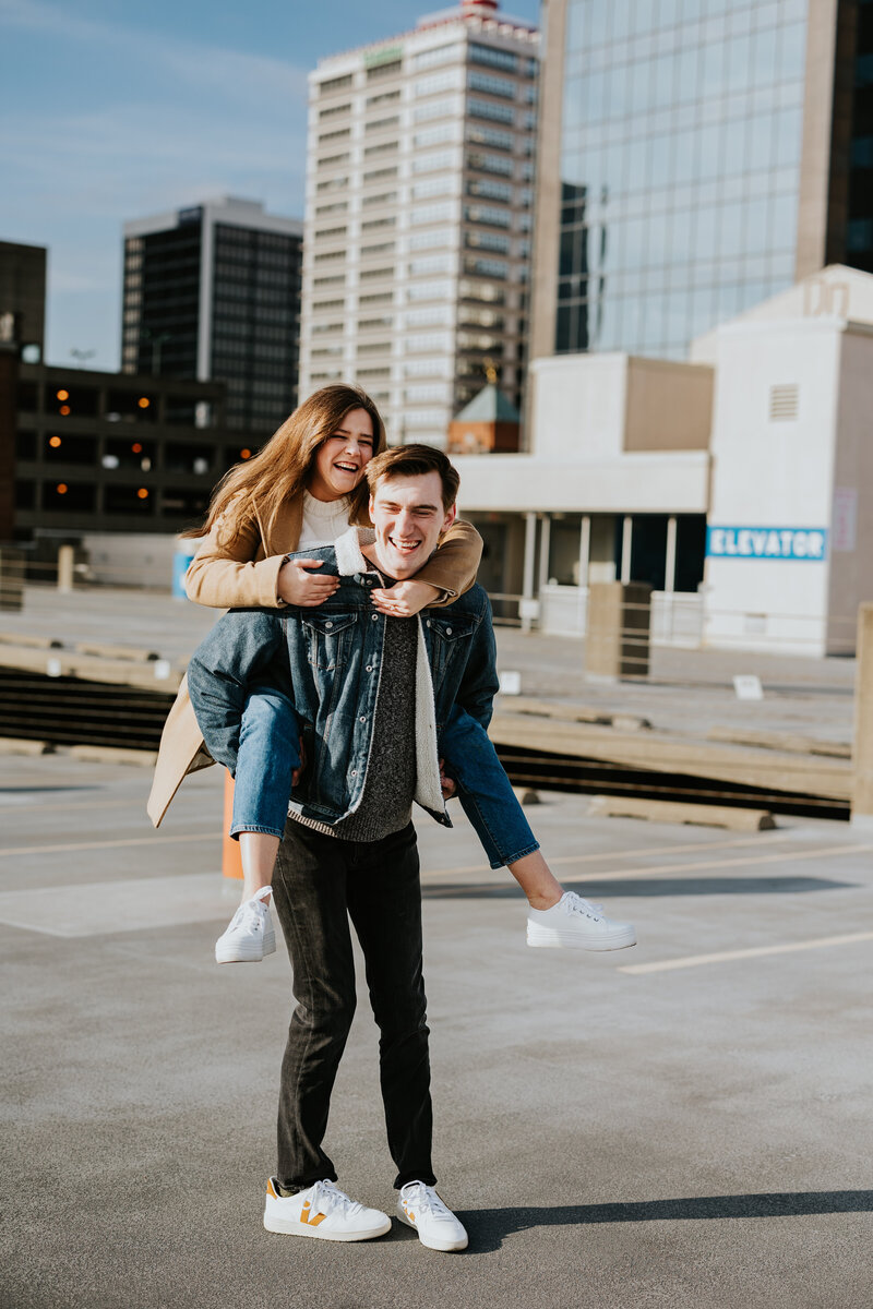 I love when couples choose an engagement session location that reflects the vibe of their wedding day. For example, if you’re planning a classic or elegant celebration, downtown Louisville’s historic buildings, rooftops, or even the Speed Art Museum can provide the perfect backdrop. On the other hand, if your wedding will have a more relaxed, rustic feel, a rolling field in Southern Indiana, a wooded trail, or a cozy family farm might be just the right fit.